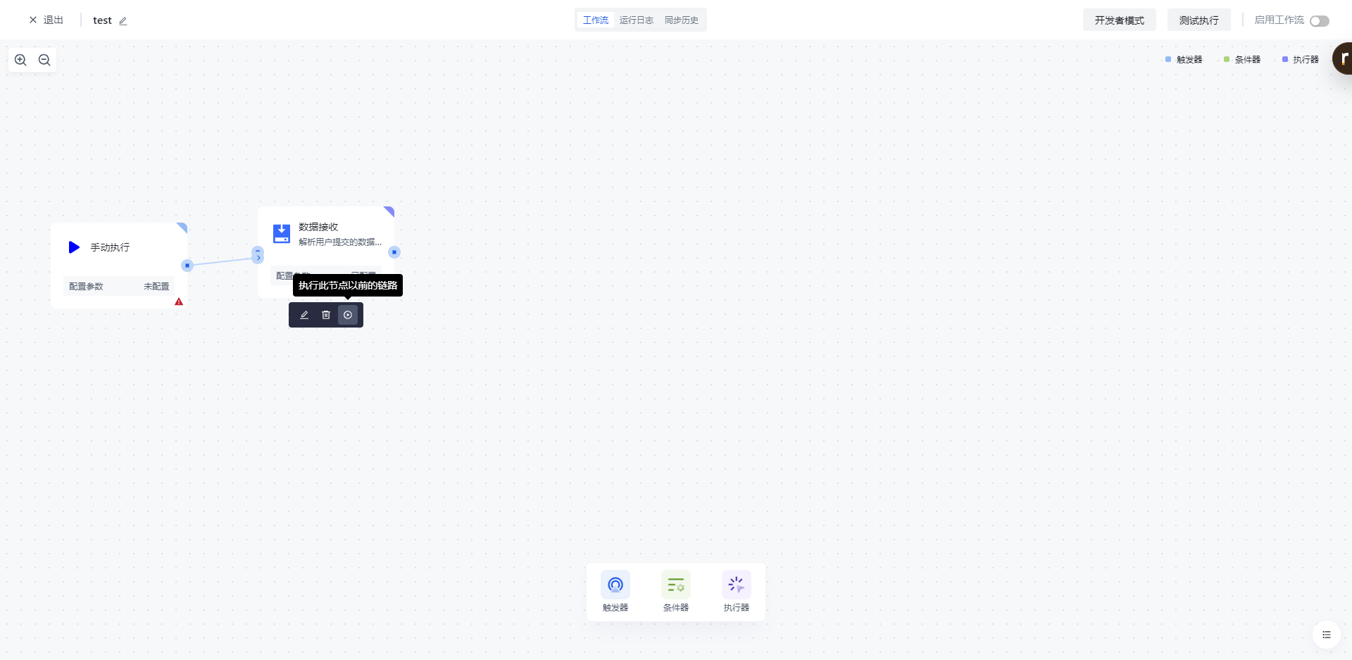 点击节点上的「执行此节点以前的链路」按钮,执行该节点。