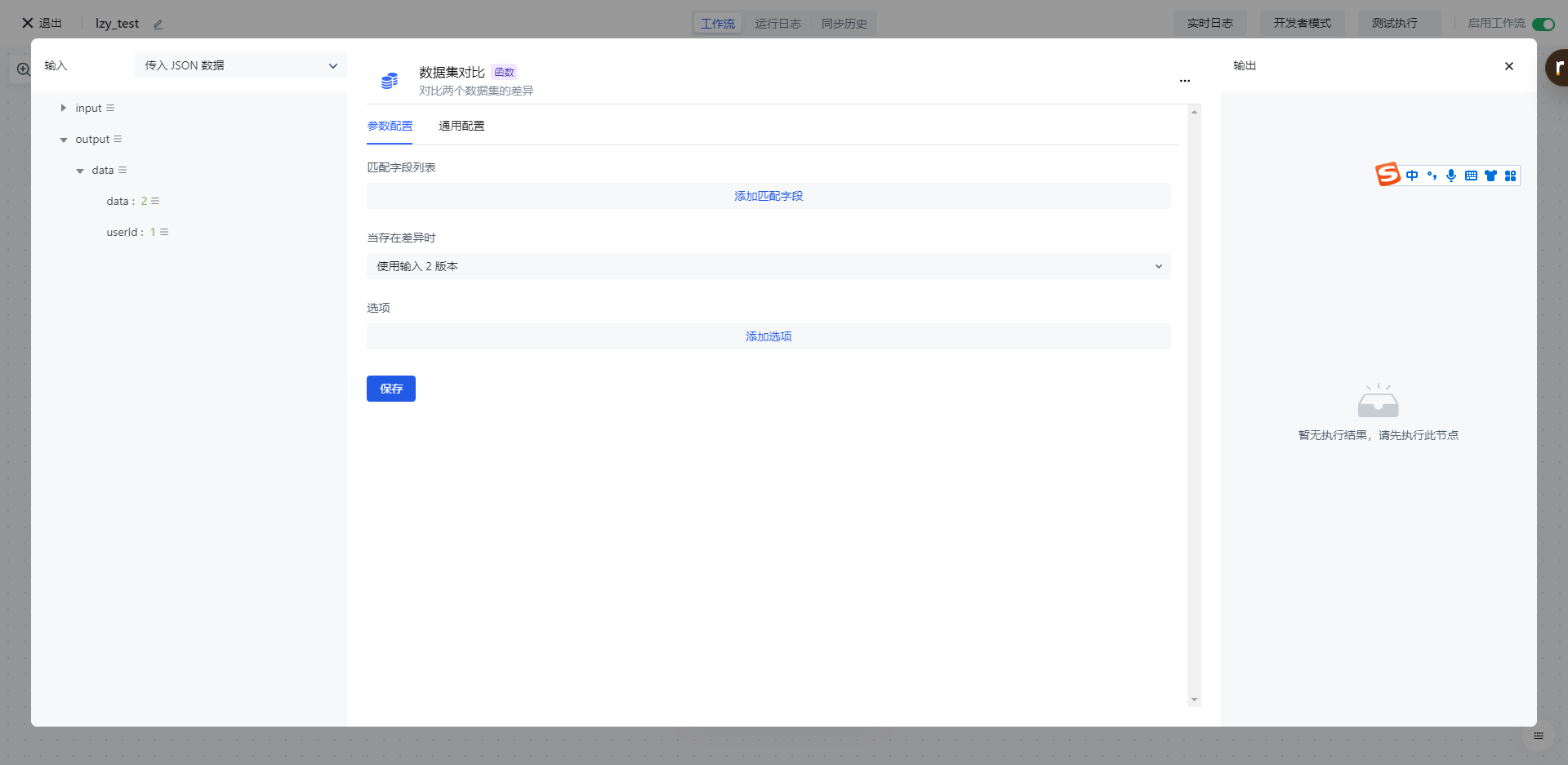 点击节点上的「执行此节点以前的链路」按钮,执行该节点。
