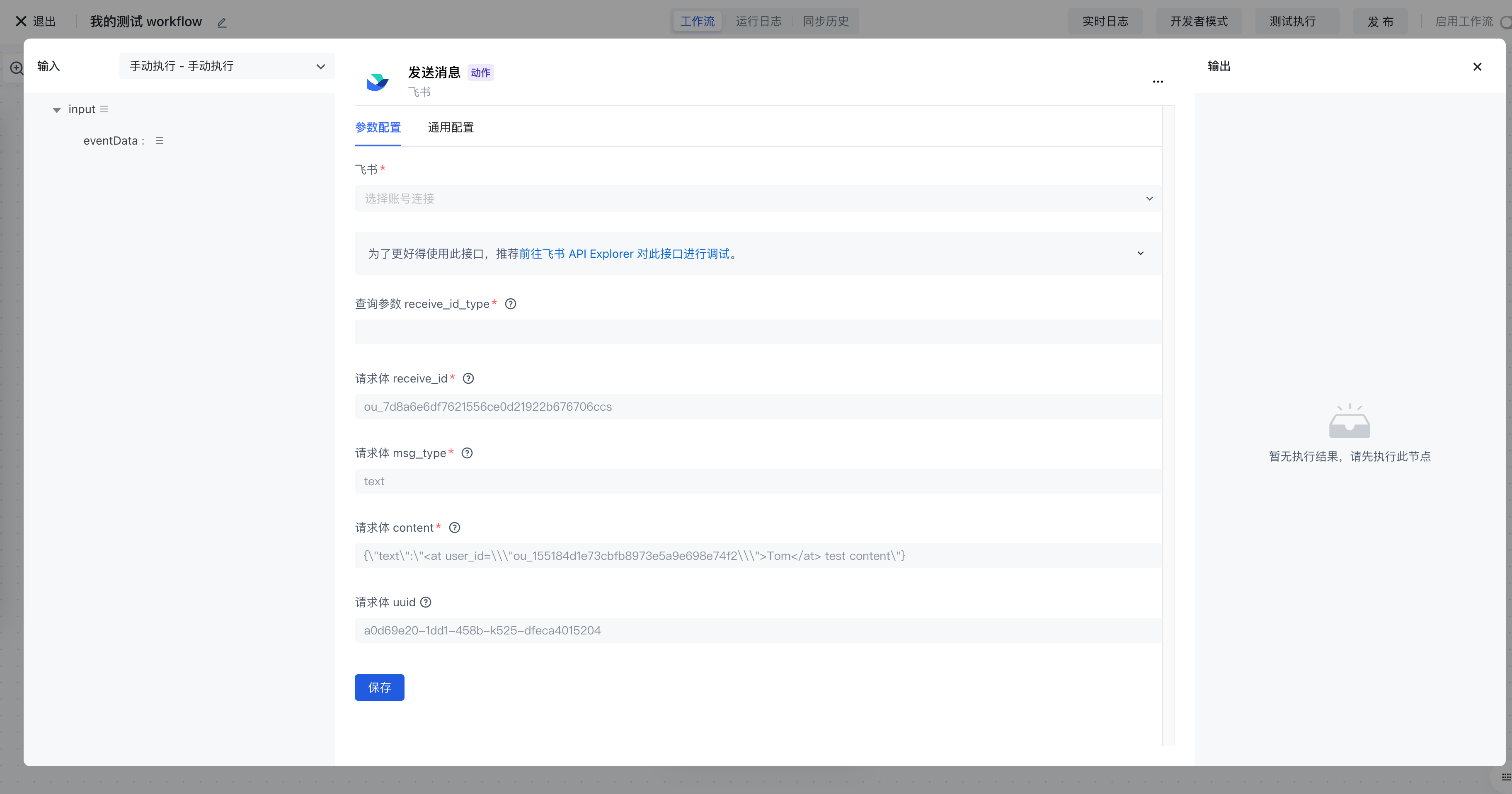 选择你需要完成的操作,比如飞书的「发送消息」: